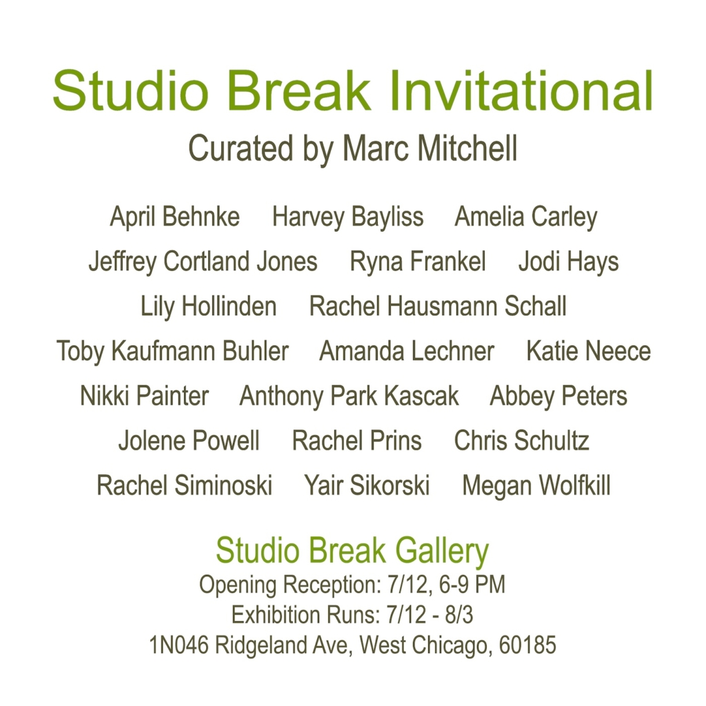 Studio Break Invitational, curated by Marc MitchellStudio Break Gallery West Chicago, IllinoisJuly 12 – August 3, 2025